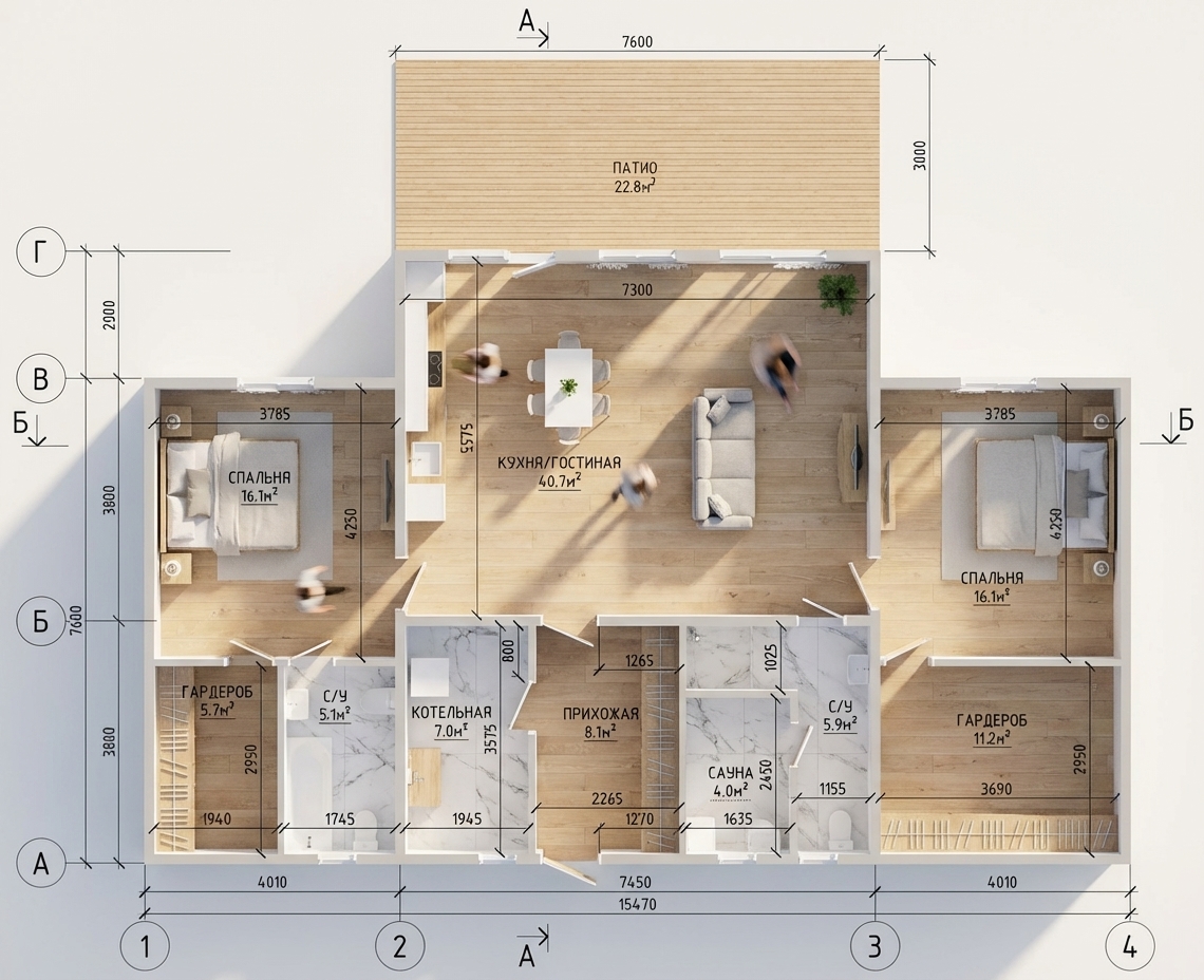 lagom 42 американский стиль проект каркасного дома 15х11 с 2 спальнями