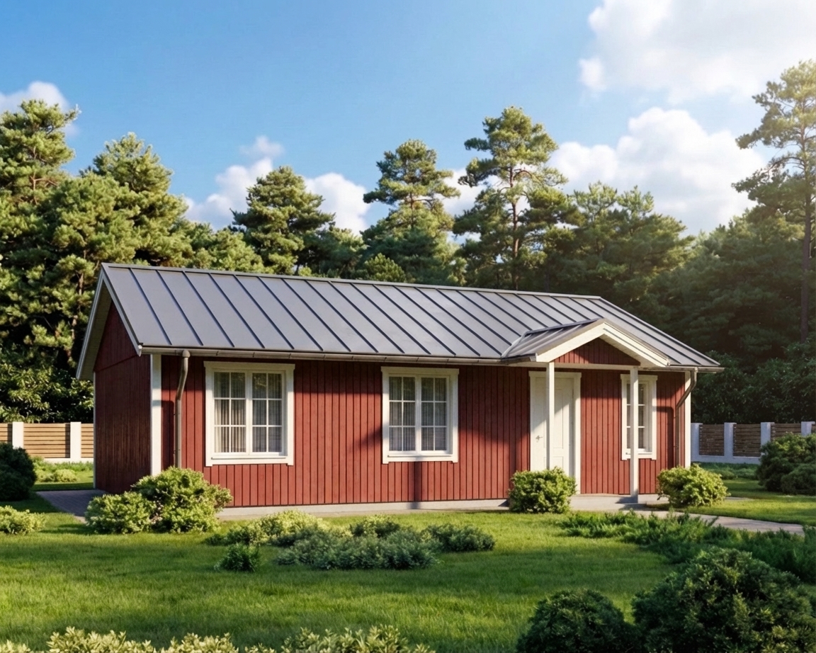 Вместительный одноэтажный дом в норвежском стиле с 3 спальнями, котельной и кухней-гостиной.
