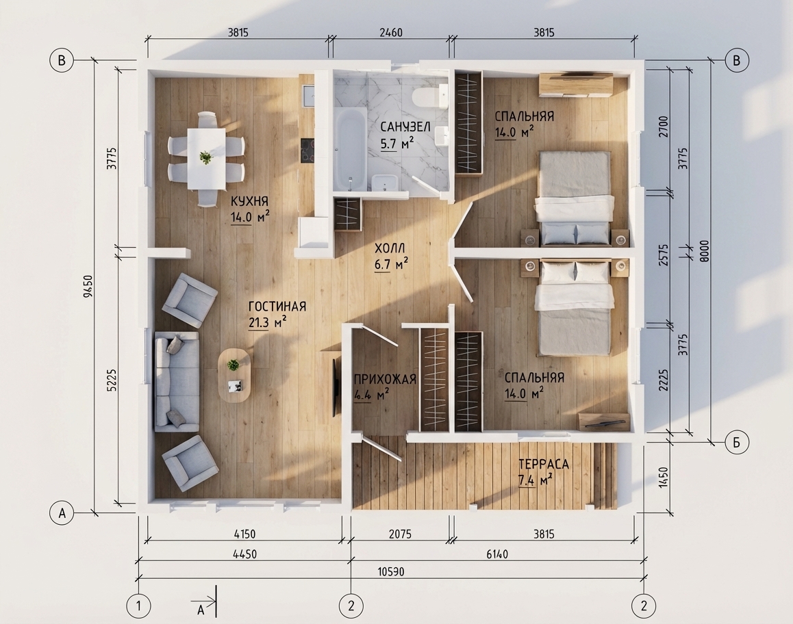 lagom 35 скандинавский стиль проект каркасного дома 11х9 с 2 спальнями