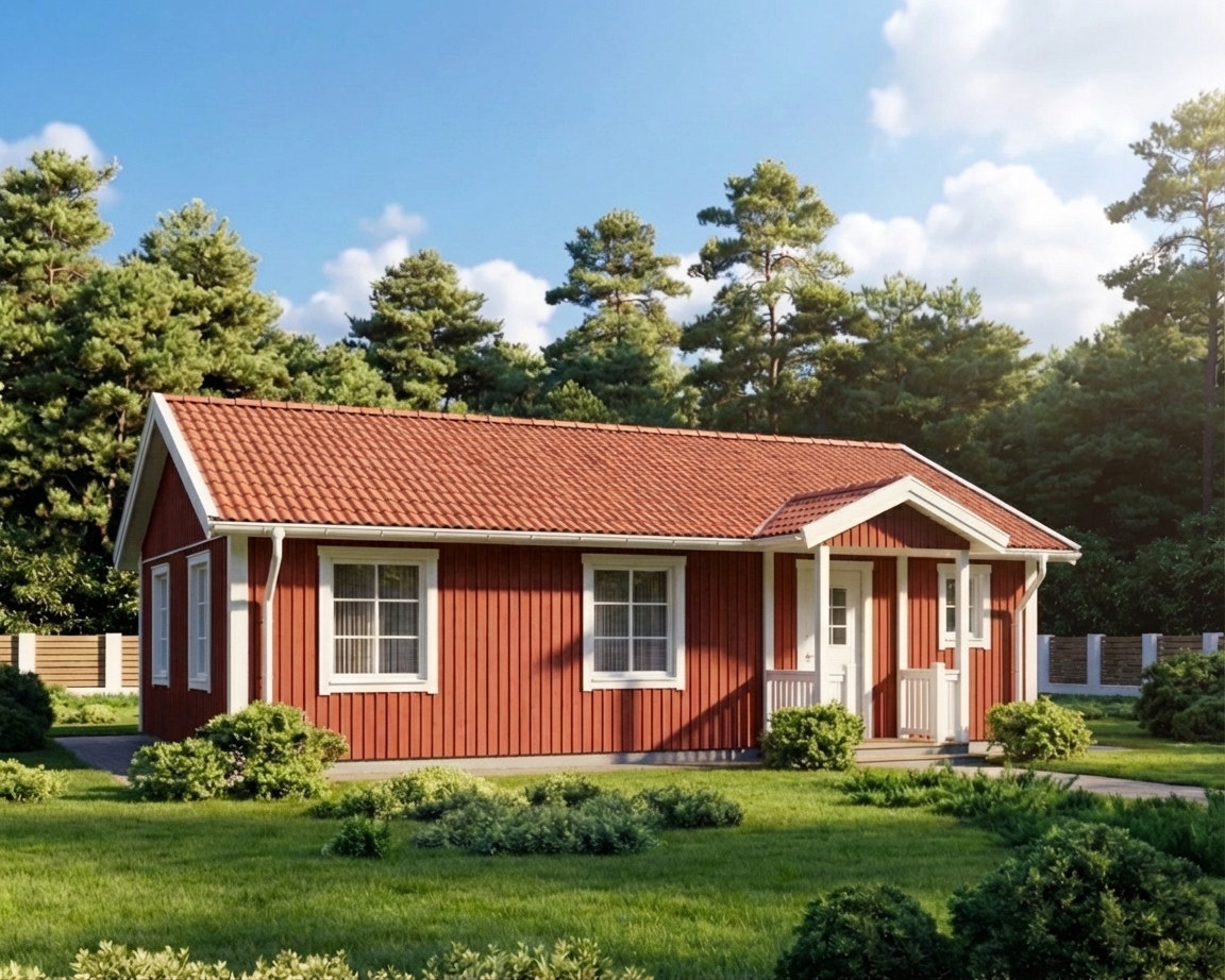 Вместительный одноэтажный дом в шведском стиле с 3 спальнями, котельной и кухней-гостиной.